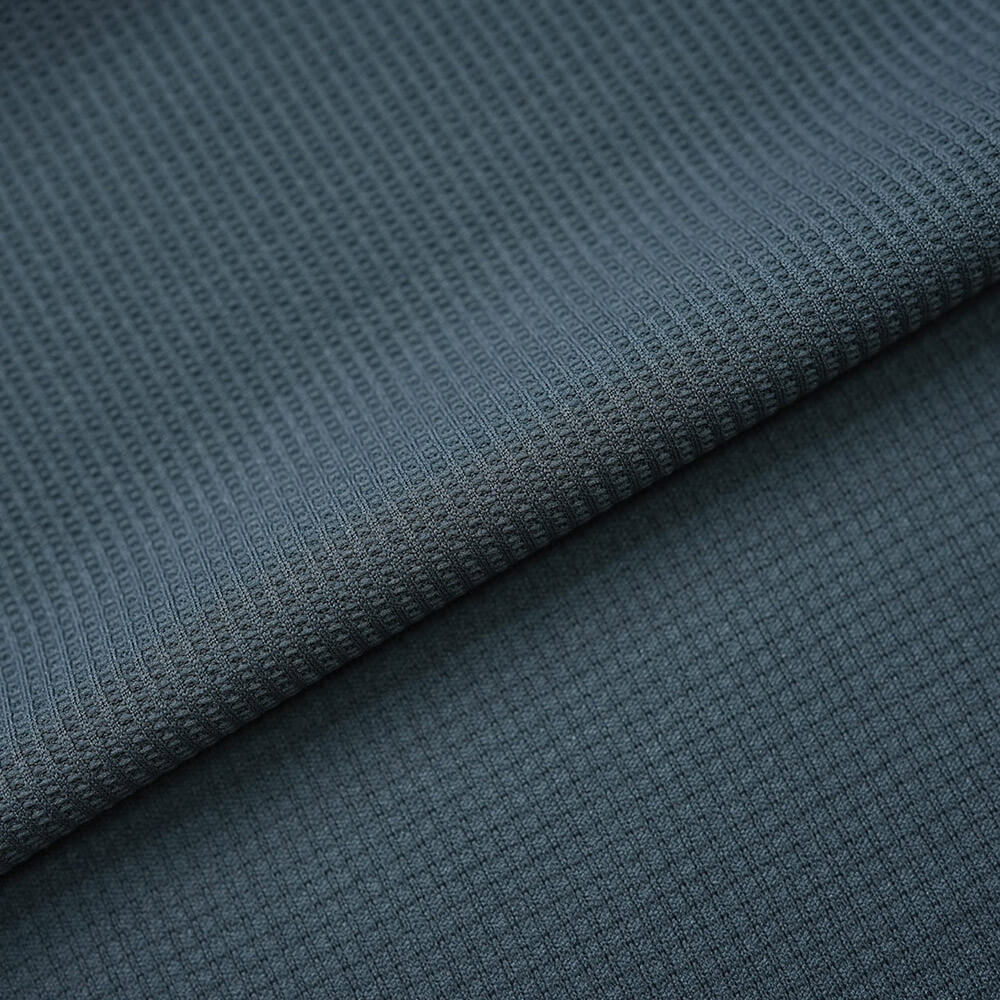 Polyester waffle fabric with moisture-wicking properties is a textured material that’s designed to draw moisture away from the body, promoting quick evaporation and keeping the wearer dry and comfortable. The “waffle” refers to the distinctive grid-like pattern that not only gives the fabric an aesthetic appeal but also enhances its functionality by increasing surface area to improve breathability and moisture dispersion.