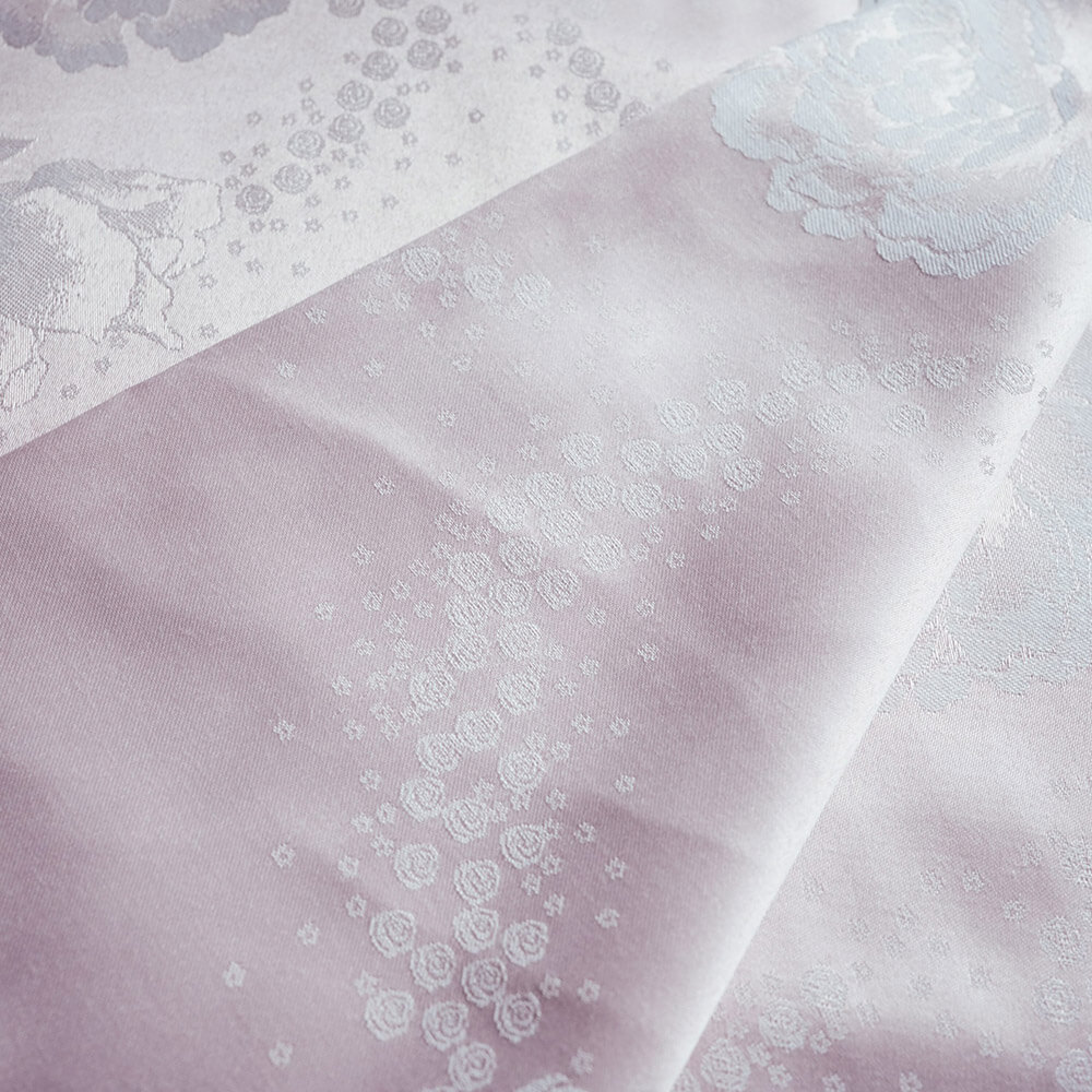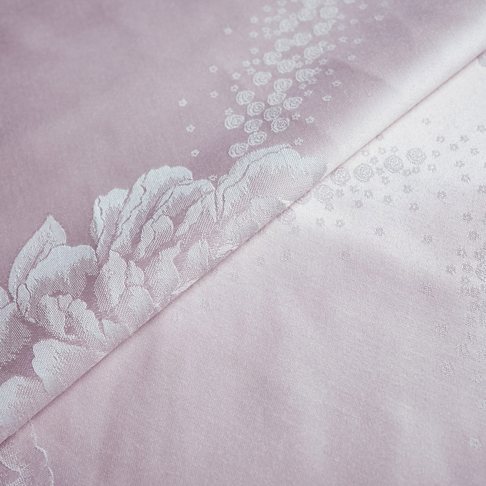 Modal is a type of rayon that is soft, smooth, and breathable. Polyester is a synthetic fiber that is durable, wrinkle-resistant, and easy to care for. Jacquard is a technique of weaving that creates intricate designs on the fabric. Lotus root pink roses is a color name that describes a light pink shade with a hint of purple.