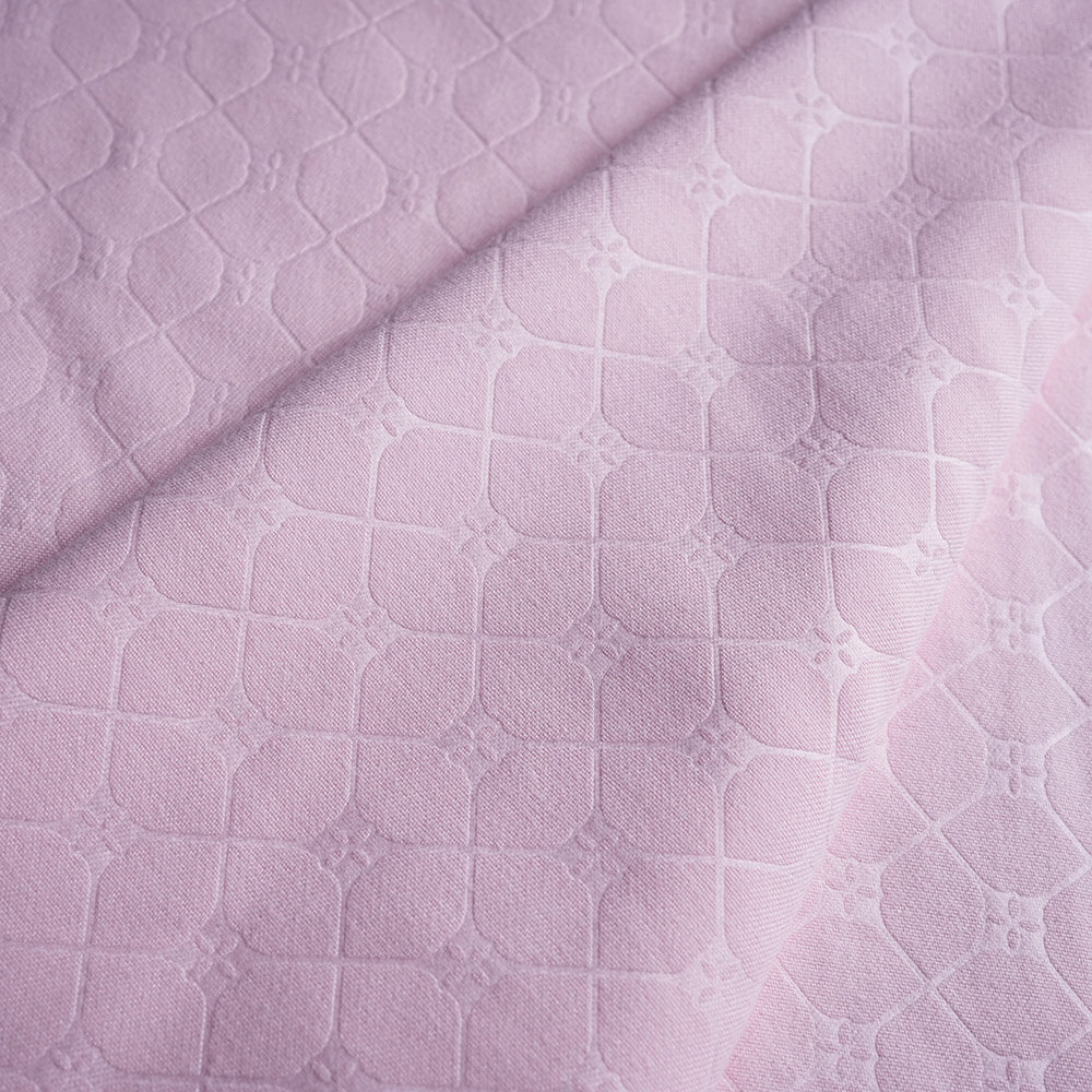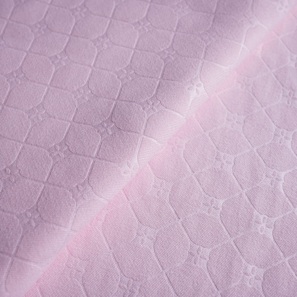 Polyester Washed Cotton Embossed-Pink Square is a blend of polyester and cotton with a raised pattern on the surface. This fabric combines the softness of cotton with the durability of polyester, making it suitable for clothing and homewares.