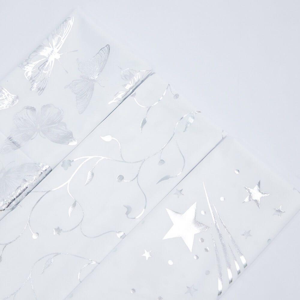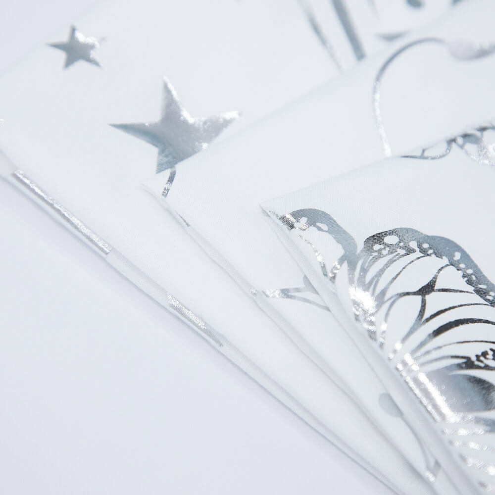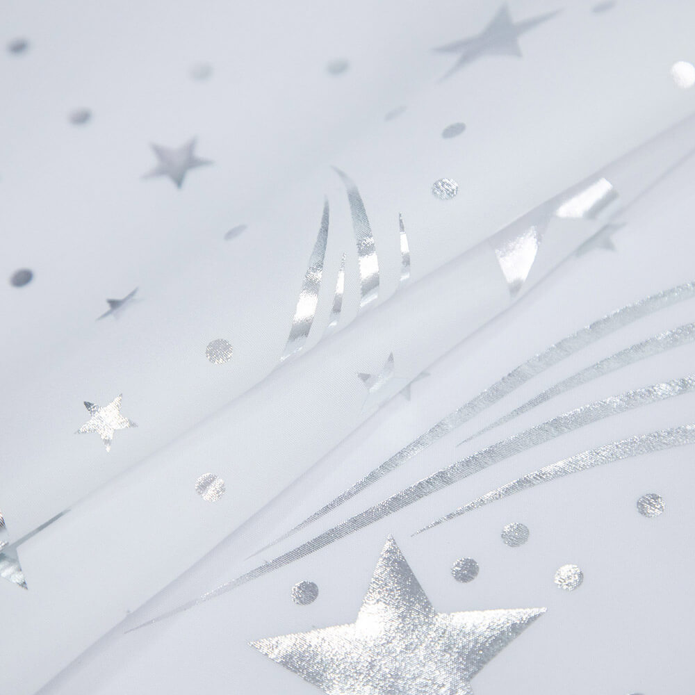 Silver Foil Printed Fabric is a unique and eye-catching textile that features a shimmering silver foil print. This fabric is created by applying a thin layer of silver foil onto the surface of the fabric, usually through a printing process.